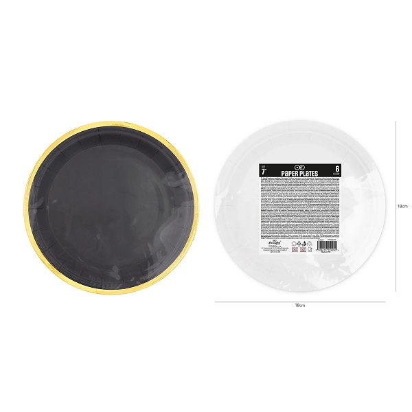 Чинии на точки, златни, черни, 18см, 6 броя
