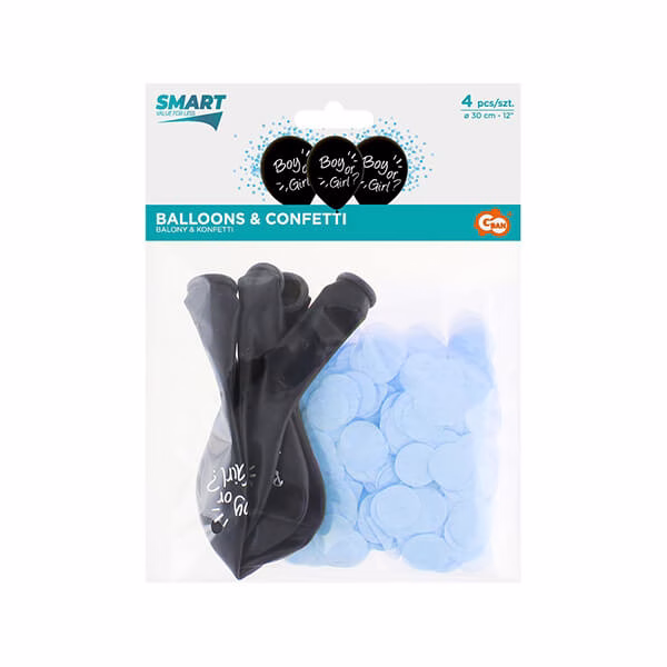 Балони Boy Or Girl, Момче или Момиче, сини конфети, 4 броя