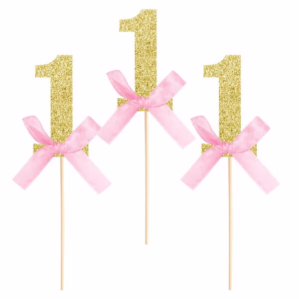 Топери за кексчета 1-ви рожден ден, розови, 6 бр
