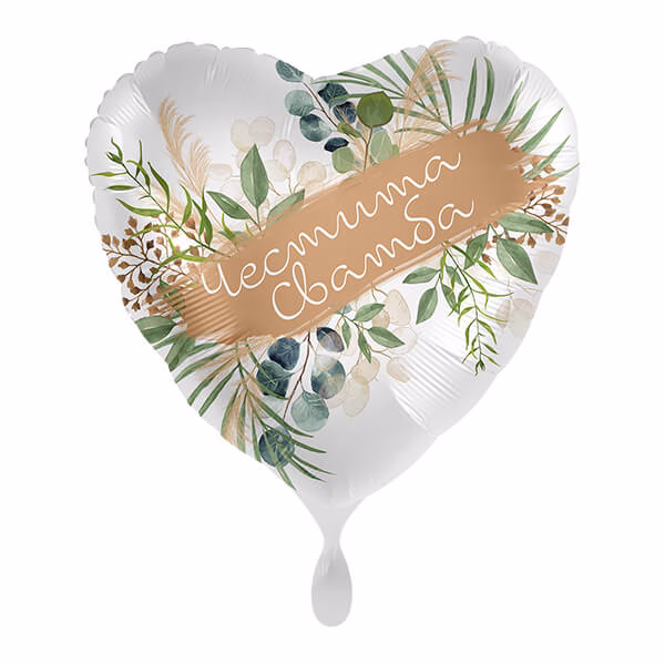 Фолиев балон с надпис Честито Скъпи Младоженци, Natural Flower Love, сърце