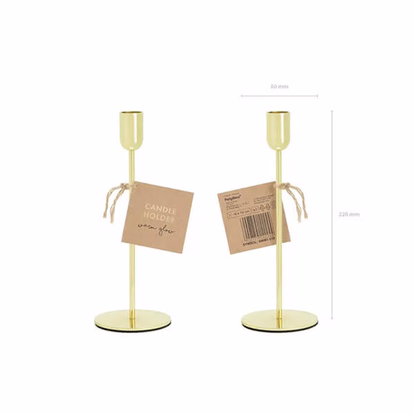 Метален свещник 22 см, злато