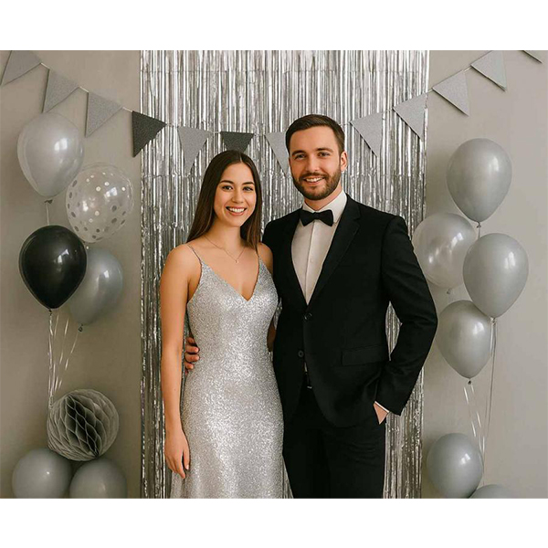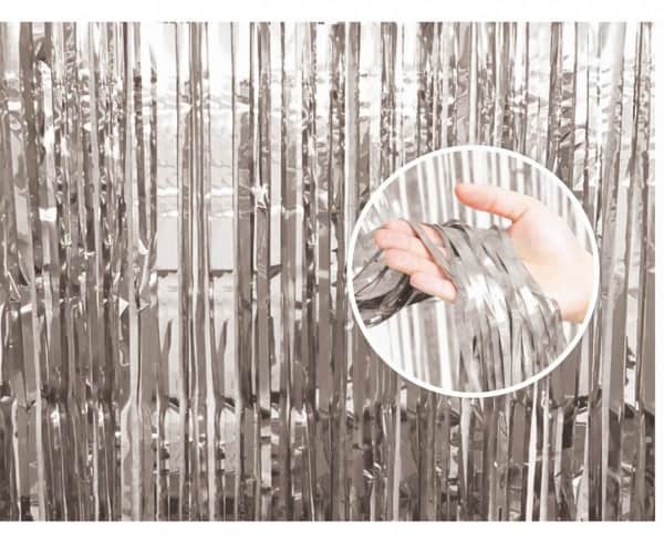 Парти завеса, ресни, сребърна, 90 х 240 см
