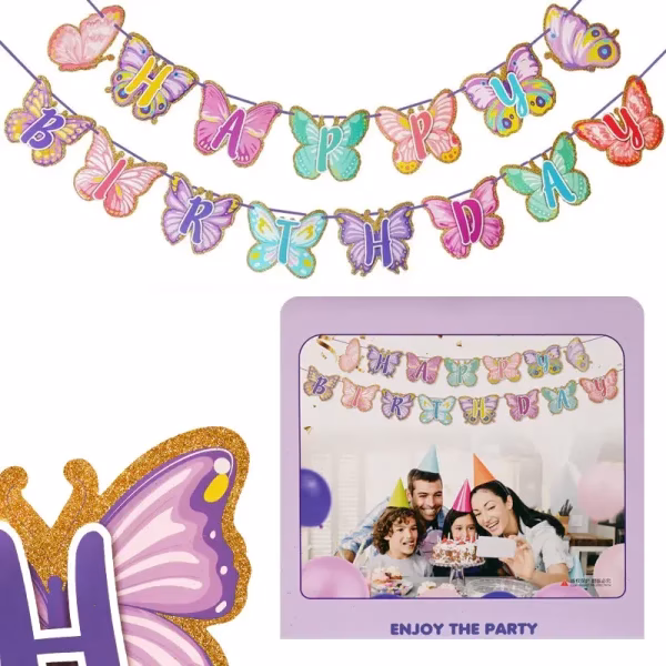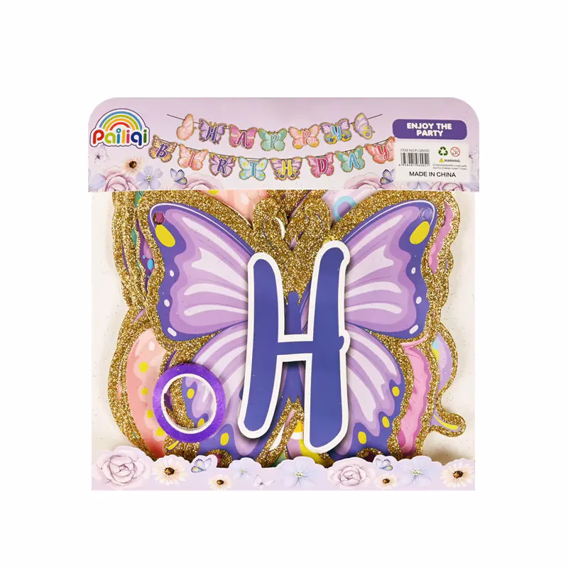 Парти украса пеперуди Happy Birthday, Банер Честит Рожден Ден, брокат