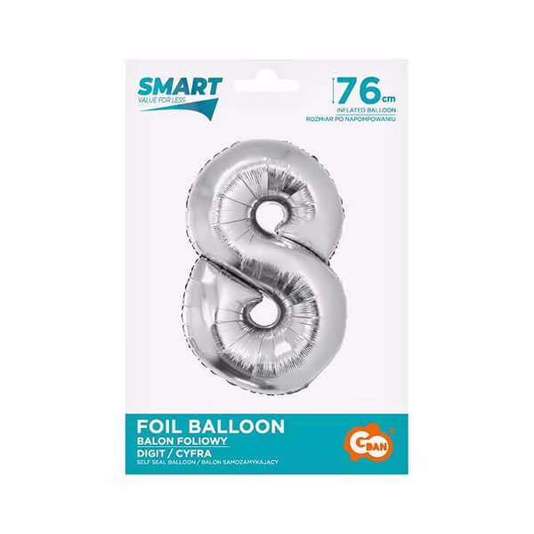 Балон фолио Цифра 8, Smart, Сребро, 76 см