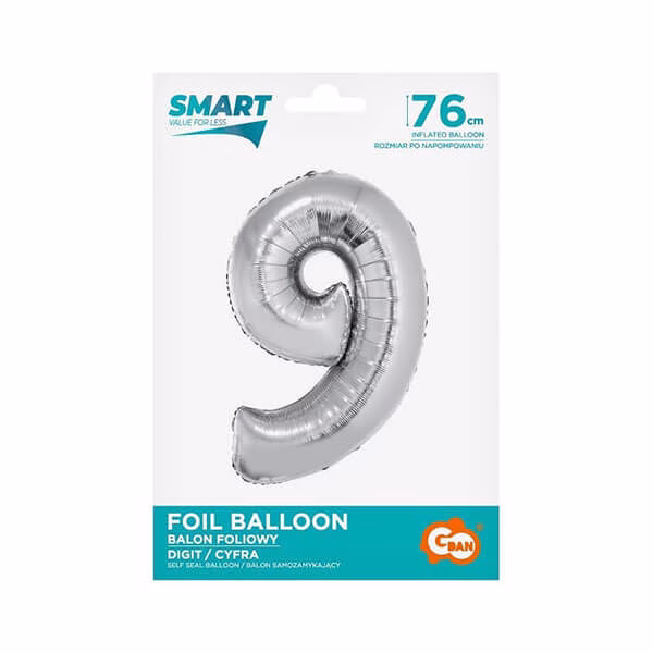 Балон фолио Цифра 9, Smart, Сребро, 76 см