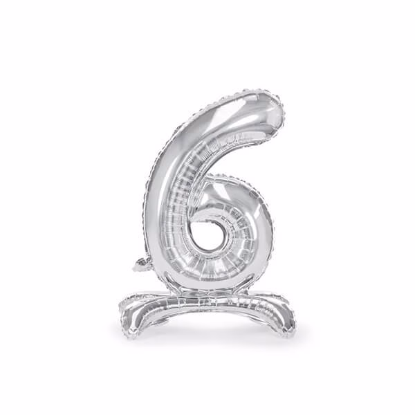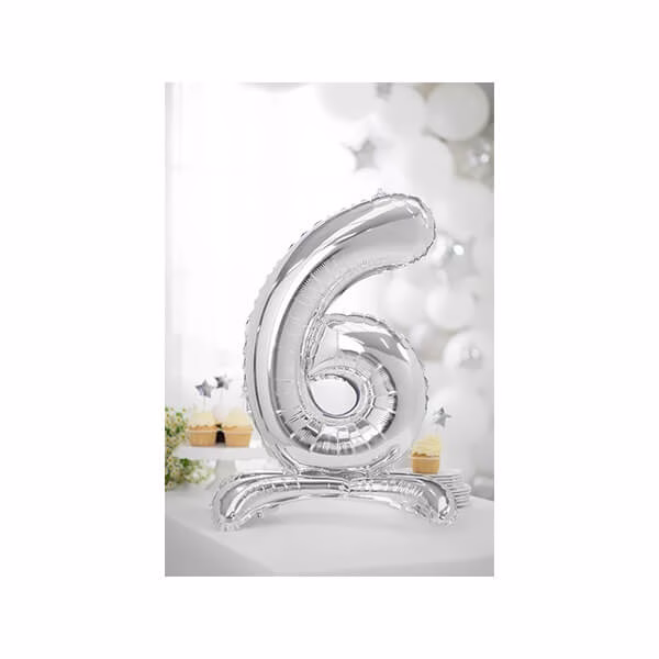 Балон фолиев стояща Цифра 6, B&C, сребро, 38 cm