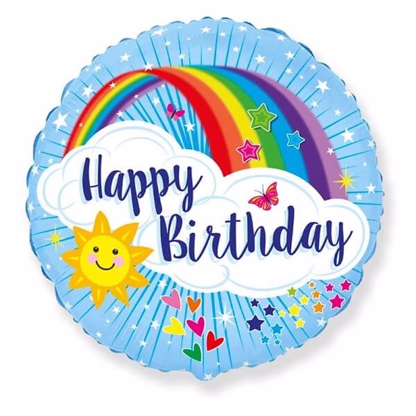 Фолиев балон Rainbow Happy Birthday, 45 см, кръг, пакетиран