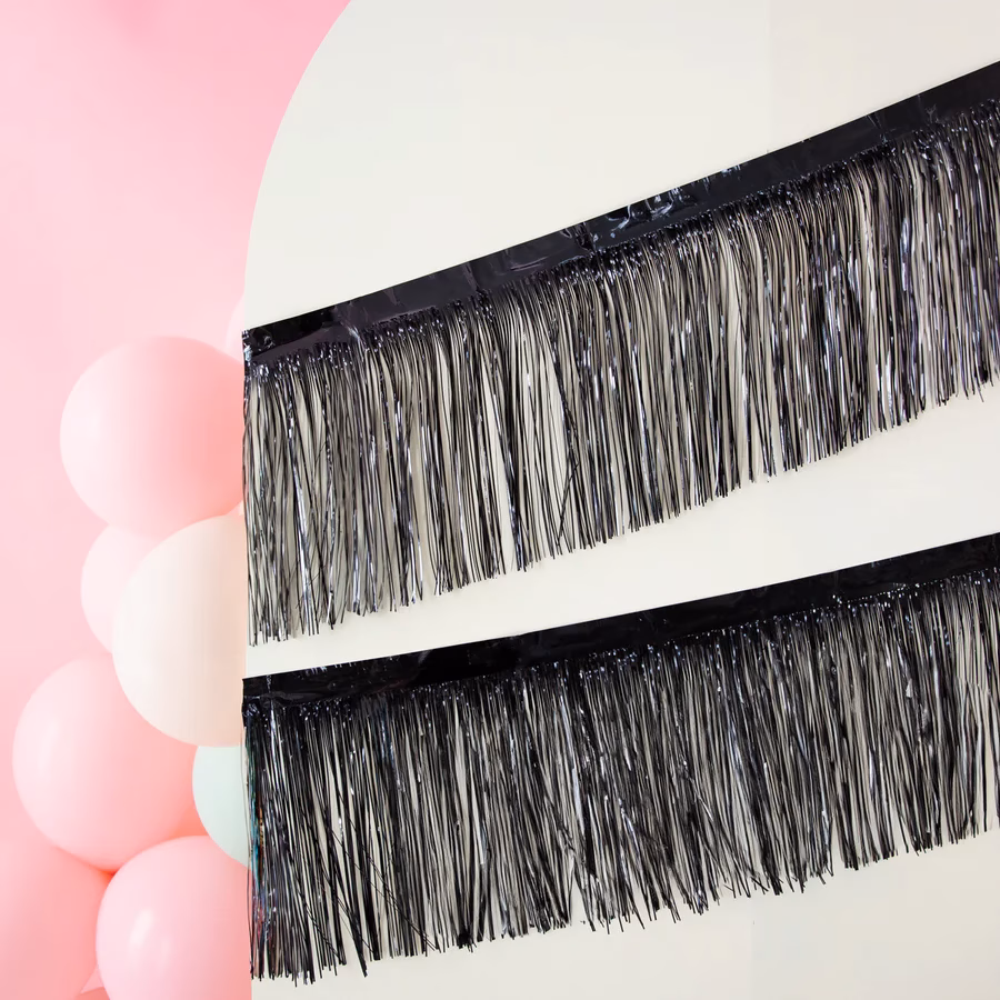 Парти завеса черна, ресни за декорация, 30×300 см