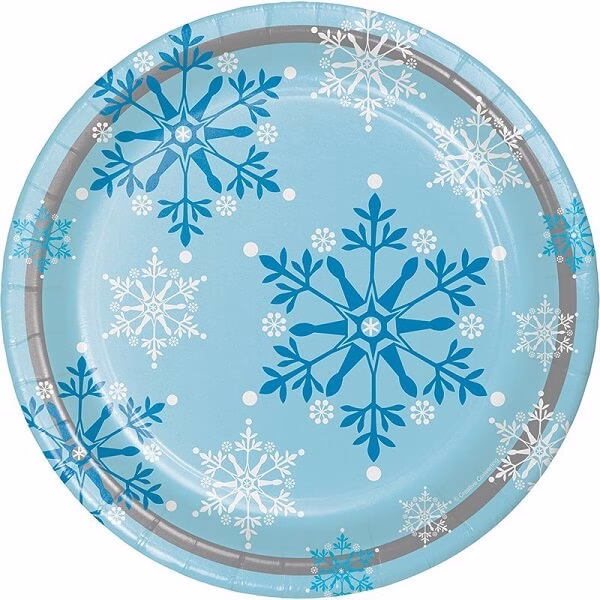 Парти чинии Снежинки, 23 см, 8 броя