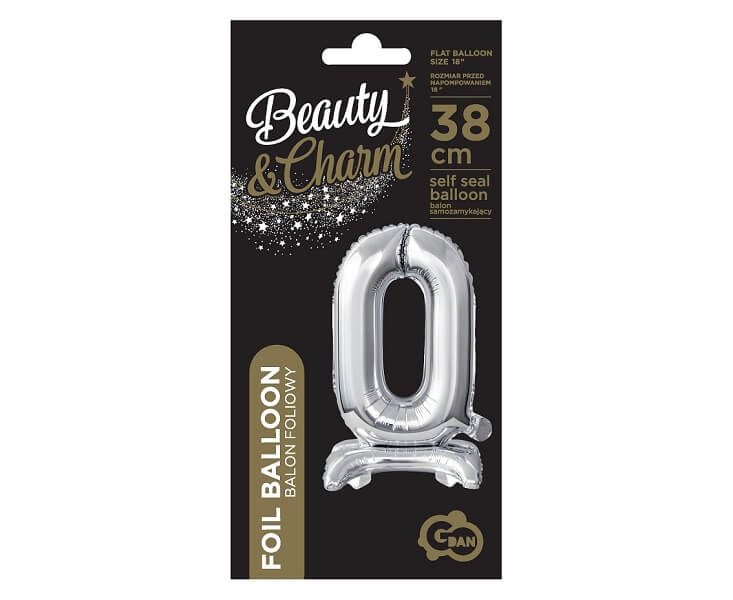 Балон фолиев стояща Цифра 0, B&C, сребро, 38 cm
