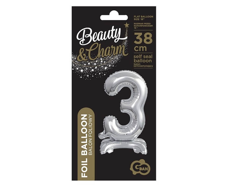 Балон фолиев стояща Цифра 3, B&C, сребро, 38 cm
