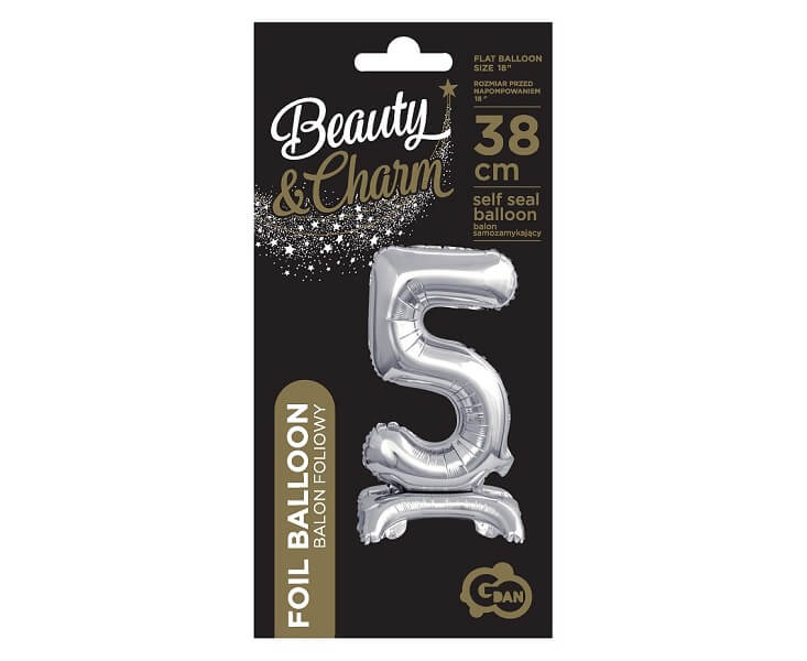 Балон фолиев стояща Цифра 5, B&C, сребро, 38 cm