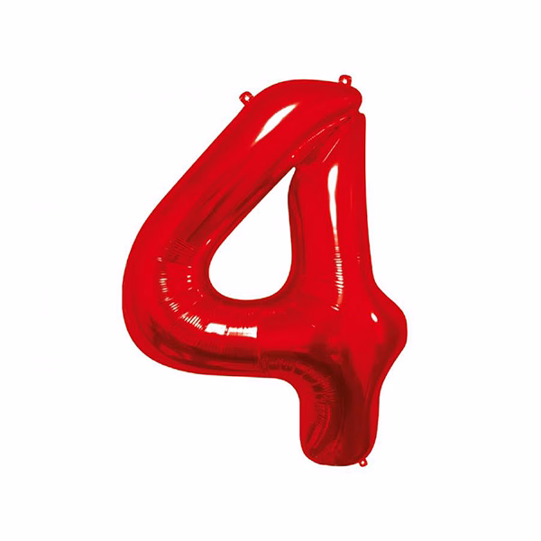 Балон фолио Цифра 4, червен – 85 см