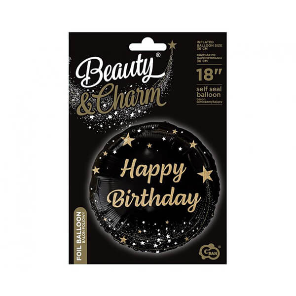 Търсите подарък за рожден ден? Организирате парти за рожден ден и искате да направите привличащи окото декорации? Балон от черно фолио с щампа на Честит рожден ден със звезди е идеалният избор.