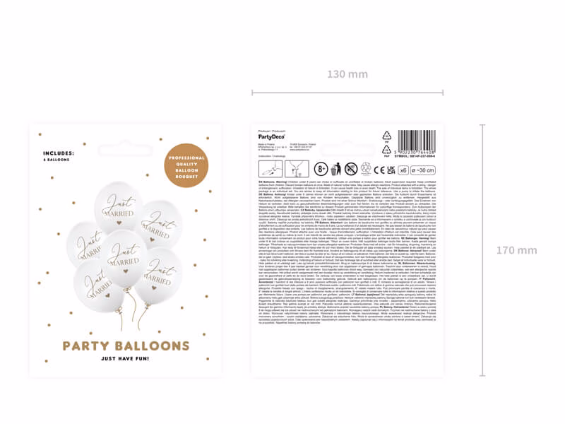 Балони 30 cm, Just Married, пастел, бели, 6 броя