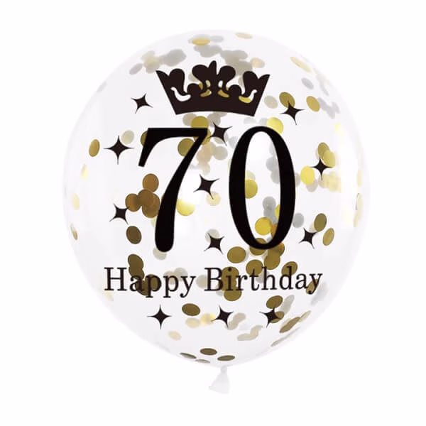 Нашите латексови балони са изработени от най-висококачествени материали, което ги прави издръжливи и не се пукат лесно. Освен това са безопасни за околната среда и лесни за изхвърляне. Комплект от 6 балона за рожден ден с конфети е идеален избор за всеки, който иска да отпразнува своя 70-ти рожден ден по уникален начин.