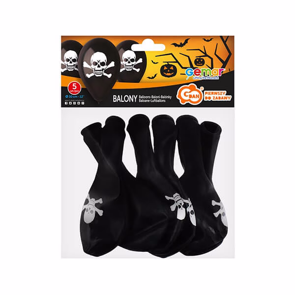 Балони череп Halloween, черни, 30 см, 5 бр.