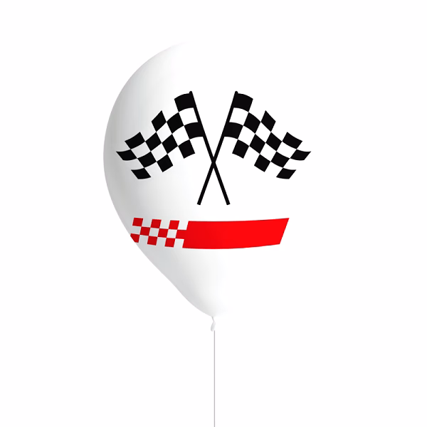 Висококачествени латексови балони с печат на черно-бели флагчета, които може да ползвате за декорация към парти на тема състезателни коли или формула 1 например.