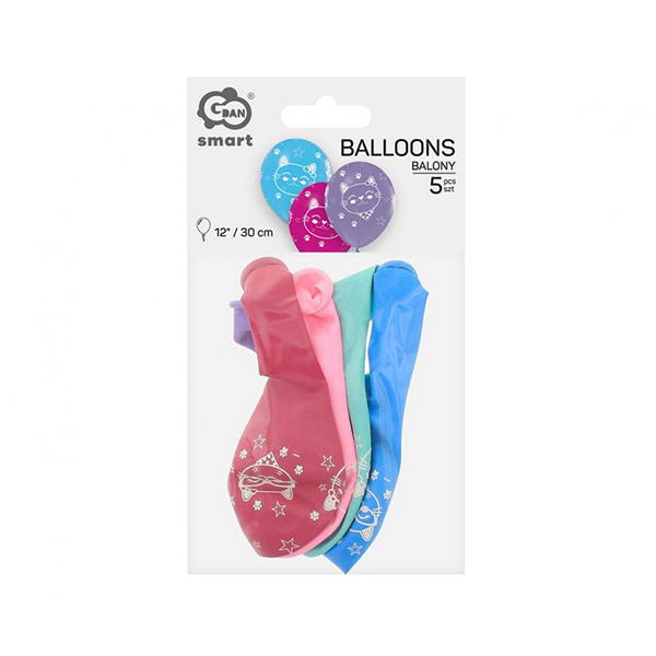Балони с Котки, различни цветове, 30 см, 5 бр.