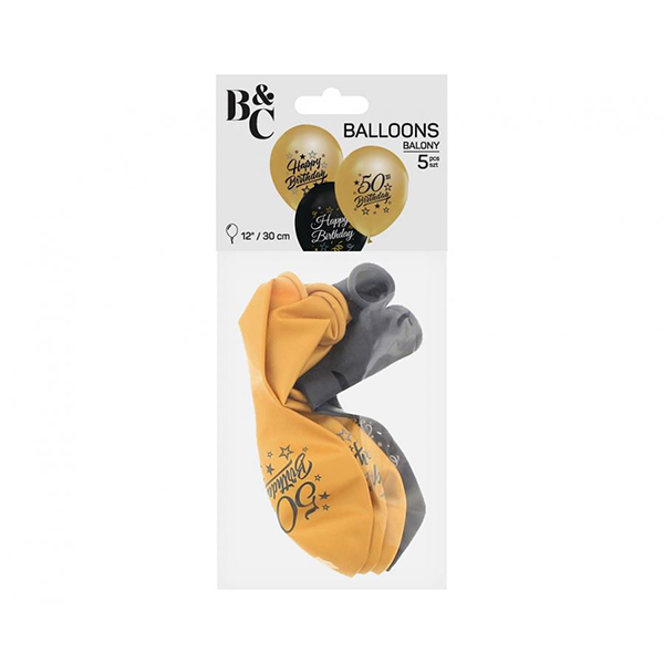 Балони с печат, Happy Birthday, 50 години, 5 бр.