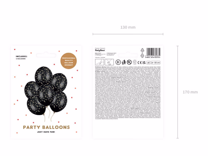 - Всяка опаковка включва 6 латексови балона микс, всеки с размер 30 см (диаметър)
