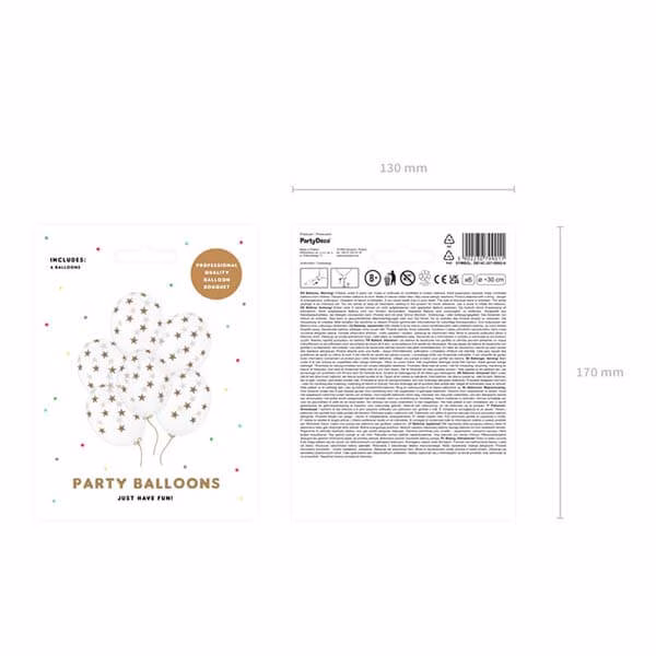 - Всяка опаковка включва 6 броя латексови балона микс, всеки с размер 30 см (диаметър)