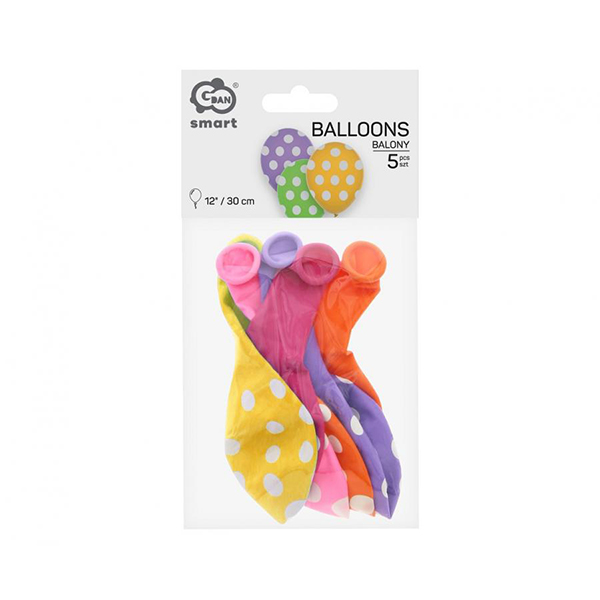 Балони Точки, цветни, 30 см, 5 бр.