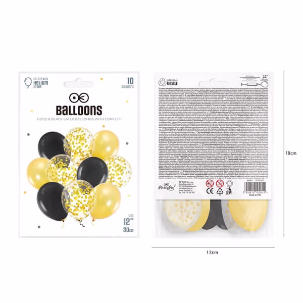 ЛАТЕКСОВИ БАЛОНИ С КОНФЕТИ МИКС ЗЛАТНИ И ЧЕРНИ
