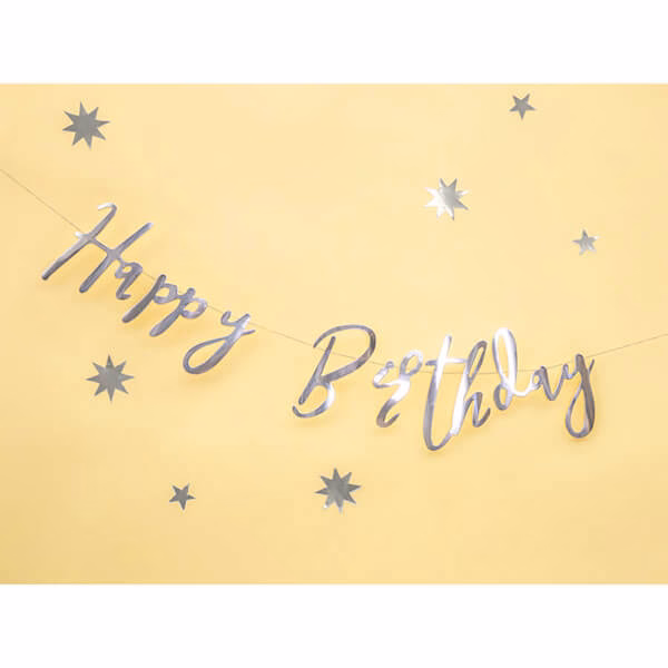 Банер Happy Birthday, сребро, ръкописен, 16.5x62cm