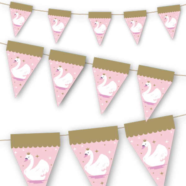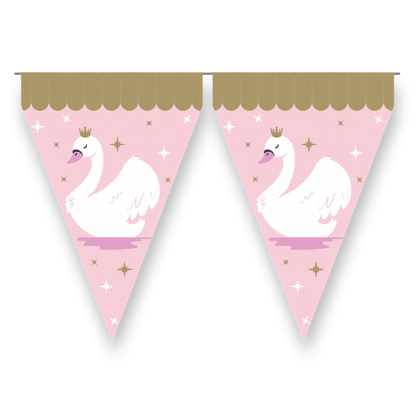 Висококачествен парти гирлянд от флагчета с Лебеди, супер дължина от 300 см, изработен от хартия с печат от двете страни, размер на флага прибл. 27 х 18 см.