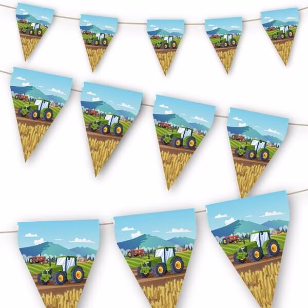 Висококачествена парти гирлянда от флагчета с трактори, супер дължина от 300 см, изработен от хартия с печат от двете страни.