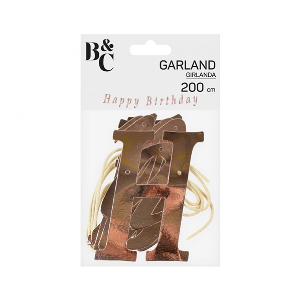 Банер с надпис Happy Birthday в розво злато , 160 cm под формата на гирлянда с букви и надпис Честит роджден ден.