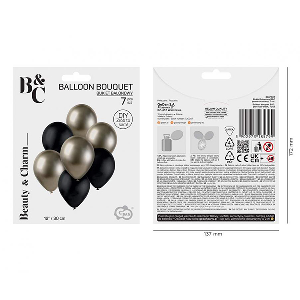 Букет от латексови балони в цвят просеко-черно, микс от колекцията Beaty&Charm, блистер