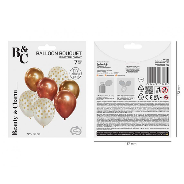 Букет от латексови балони в златисто-меден микс от колекцията Beaty&Charm, блистер