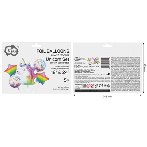 Размер в инчове: 24 “( балон еднорог ) + 18” (4 броя други форми )
