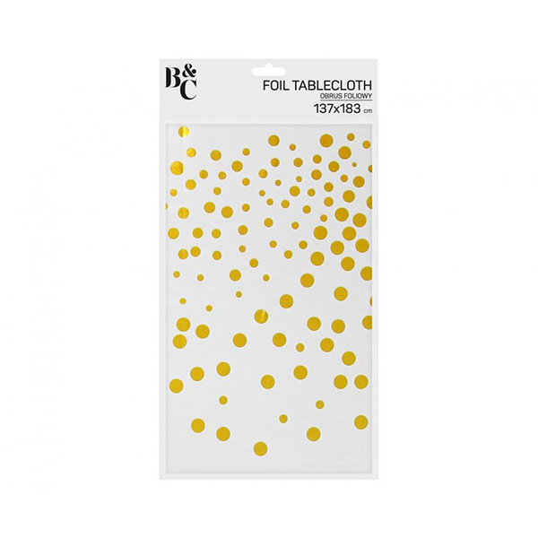 Бяла покривка, B&C, златни точки, фолио, 137×183 см