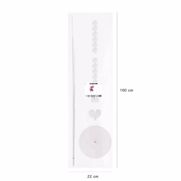 • Стойката се състои от основа с две части, 11 пръчки с различна дължина /40-98см/и 12 тапи/ чашки за балони