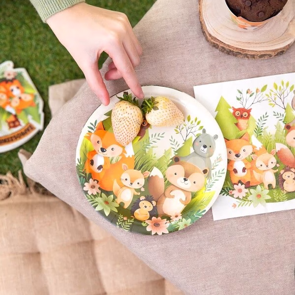 • Пакет от 6 броя картонени чинии с изображения на горски животни