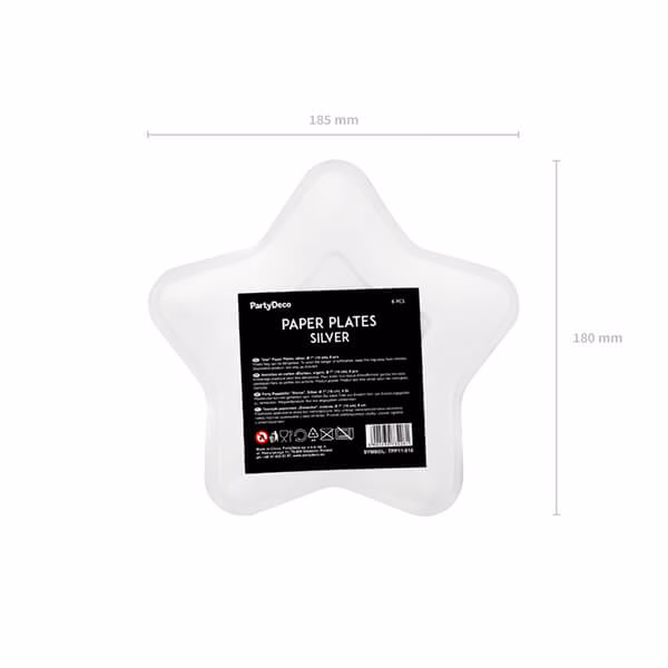 Чинии сребристи Звезда, металик, 18см, 6 бр.