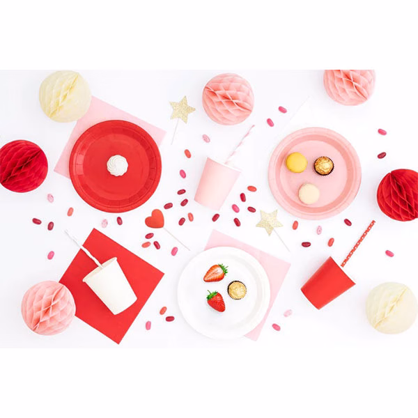 Декорация хартиена Топка, пчелна пита, червена, 10 см