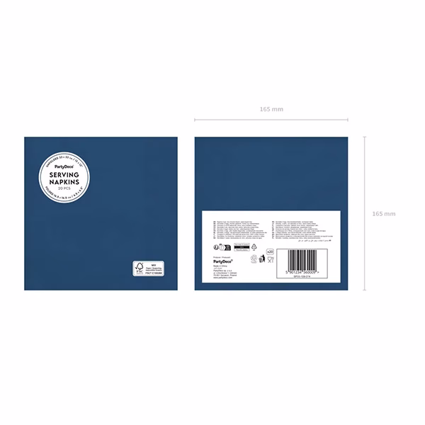 Хартиени парти салфетки в тъмносин цвят, размер след разгъване прибл. 33 x 33 см