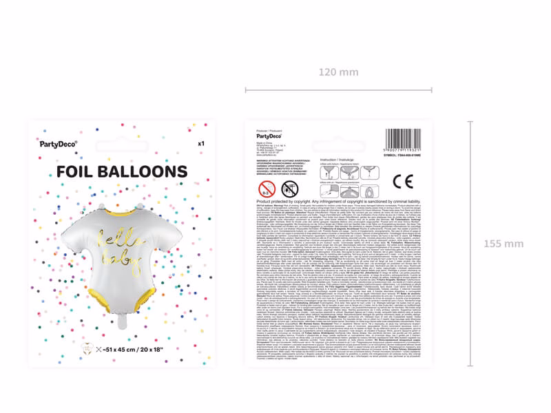 Невероятен балон от матово фолио във формата на бебешко боди в бял цвят с метален златист принт, размер прибл. 51 x 45 см (20 x 18 инча).