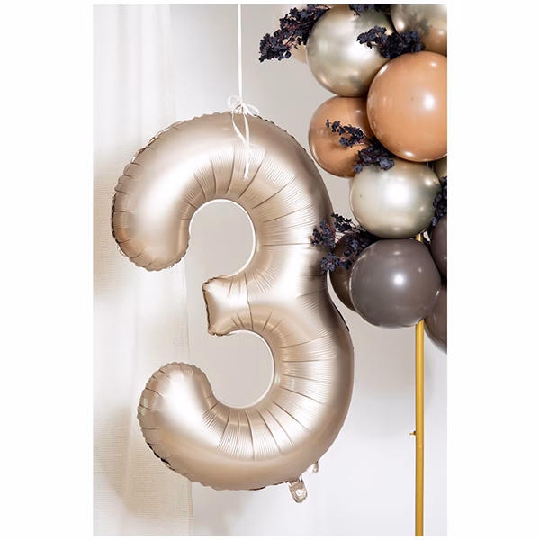 Скромен блясък за всяко парти. Специален фолиев балон с номер с мека, модерна и минималистична визия. Вдъхновява за декориране на партита в рамките на неутралната и земна тенденция. Може да се комбинира красиво с нашите блестящи балони и декорации.