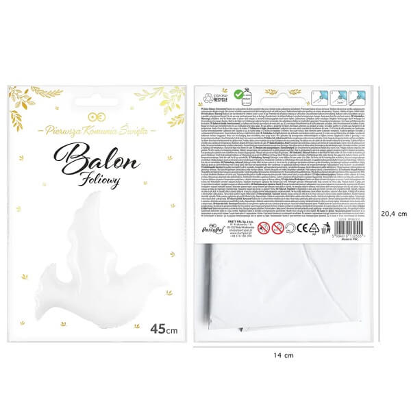 Белият балон от фолио с форма на гълъб е перфектната украса за специалното събитие. Балонът е изработен от здраво фолио и лети дълго време. Балонът има самозатварящ се клапан, благодарение на който лесно можете да го напълните и да не губите ценен хелий или въздух.