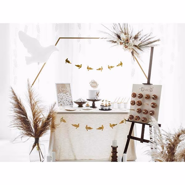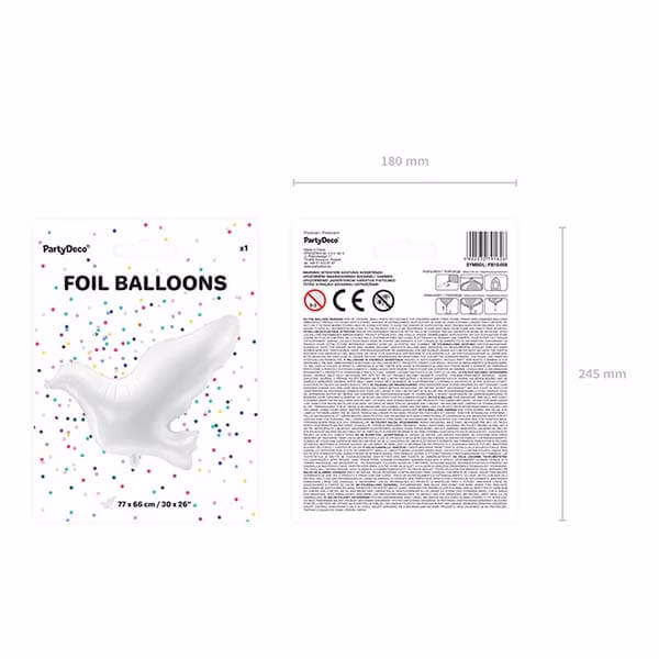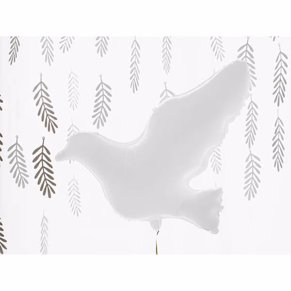 Нежен и красив фолиев балон във формата на бял гълъб. Балонът е подходящ за декорация на свето кръщене, погача, посрещане на бебе, сватби и детски партита.