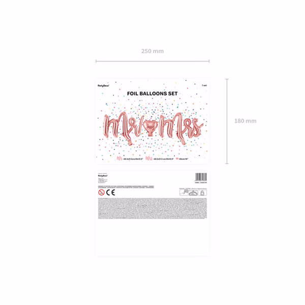 Фолиев балон надпис Mr Mrs, розово злато, 69 х 125 см