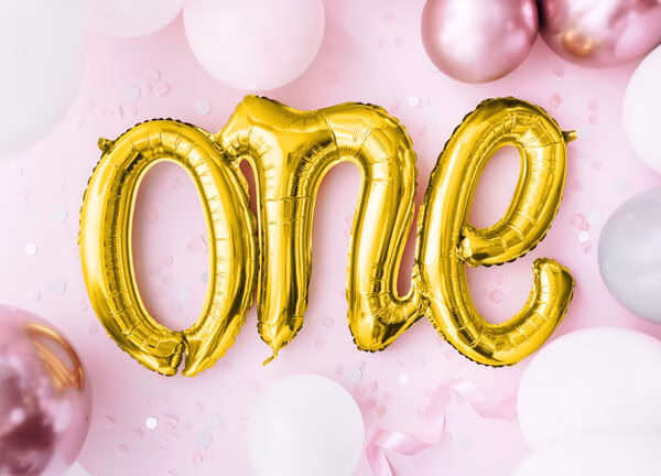 Златен Балон фолио с букви, изписващ надпис One, подходящ за първи рожден ден или като декорация за фотосесия. Красиво предложение за ценители, които искат да са №1