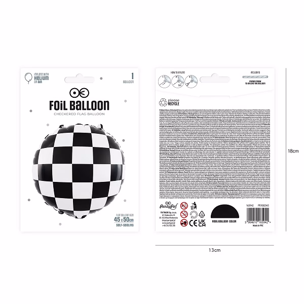 ФОЛИEВ БАЛОН С РЕЙСИНГ МОТИВ В БЯЛО И ЧЕРНО, ОПАКОВАН