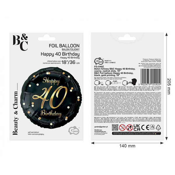 Търсите подарък за 40-ия си рожден ден? Организирате четиридесети рожден ден и искате да направите грабващи окото декорации? Отивате на рожден ден на 40-годишен и се чудите какъв подарък да изберете? Балон от черен фолио със златен принт Happy 40 Birthday ще бъде чудесен избор!