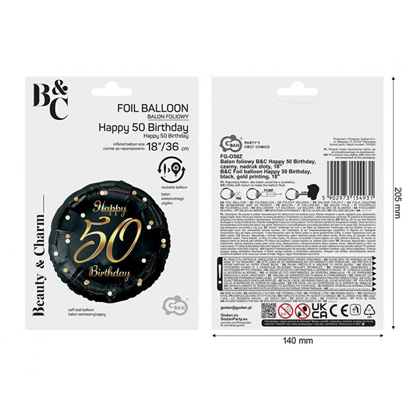 Търсите подарък за 50-ия си рожден ден? Организирате 50-ти рожден ден и искате да направите привличащи погледа декорации? Отивате на рожден ден на 50-годишен и се чудите какъв подарък да изберете? Балон от черен фолио със златен принт Happy 50 Birthday ще бъде чудесен избор!